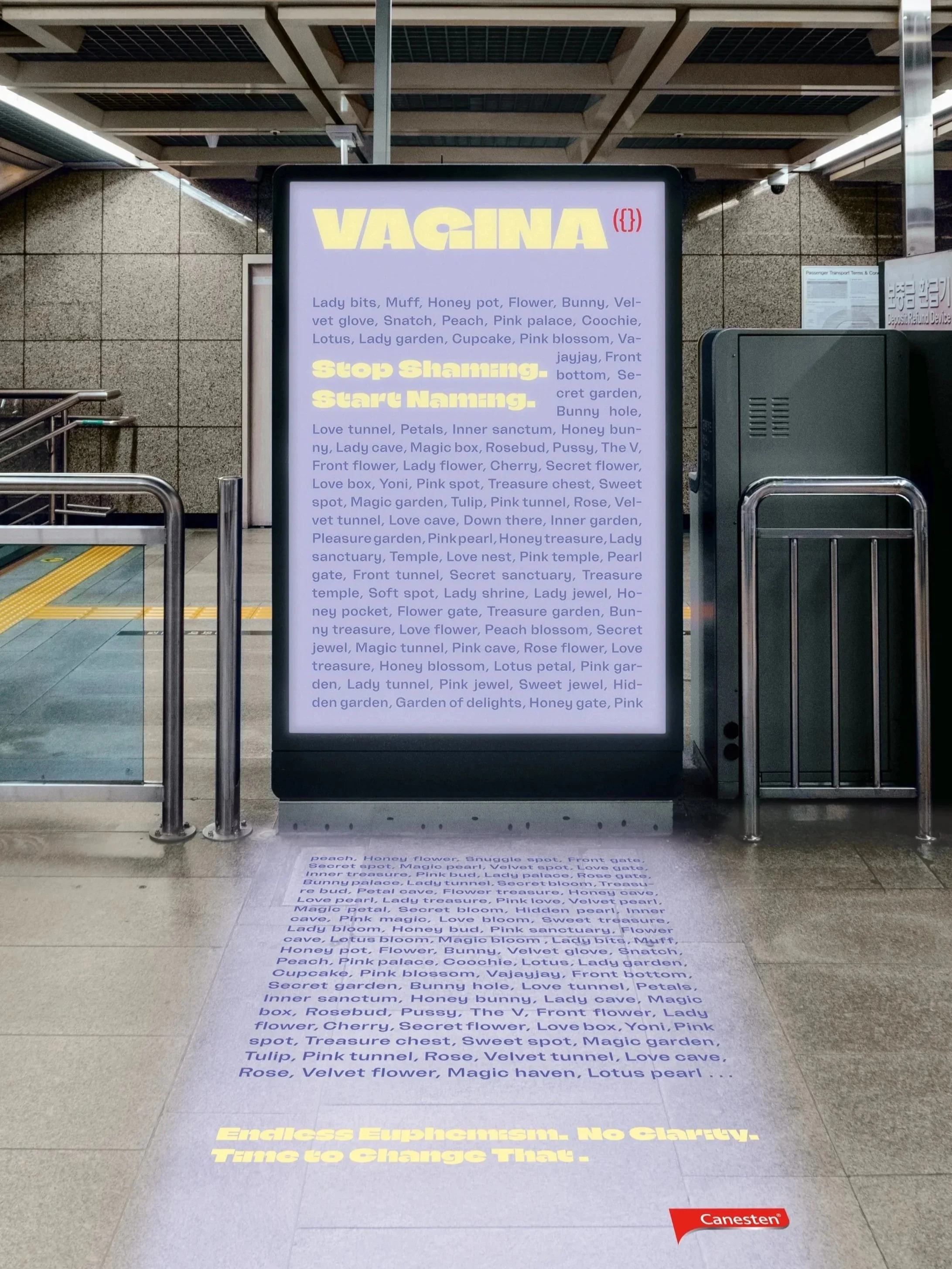 Eine fiktive internationale Awareness-Kampagne für Canesten, die Tabus rund um weibliche Intimgesundheit aufbricht. Basierend auf umfangreicher Recherche zeigt das Projekt, wie Euphemismen Scham erzeugen – und wie klare Sprache Normalität, Wissen und Selbstbestimmung fördert.